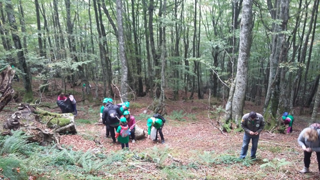 Los 30 participantes fueron trasladados hasta Soba por el autobús puesto a disposición por FNYH. Tras acercarse a pie hasta un bosque de hayas, se explicó a los voluntarios la forma correcta para recoger semilla y repartió el material necesario para la actividad.