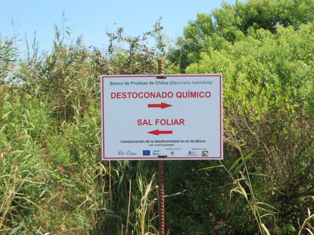 The LIFE Miera Project works firmly in the elimination of the Eastern baccharis in the Ria de Cubas and the Marisma del Conde wetland, using the technical and personal means at its disposal to replace the colonized areas by this North American shrub with native vegetation, such as the bay, the oak or the hawthorn and boost the growth of marsh species such as the European beachgrass.