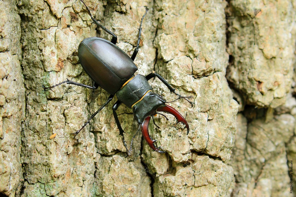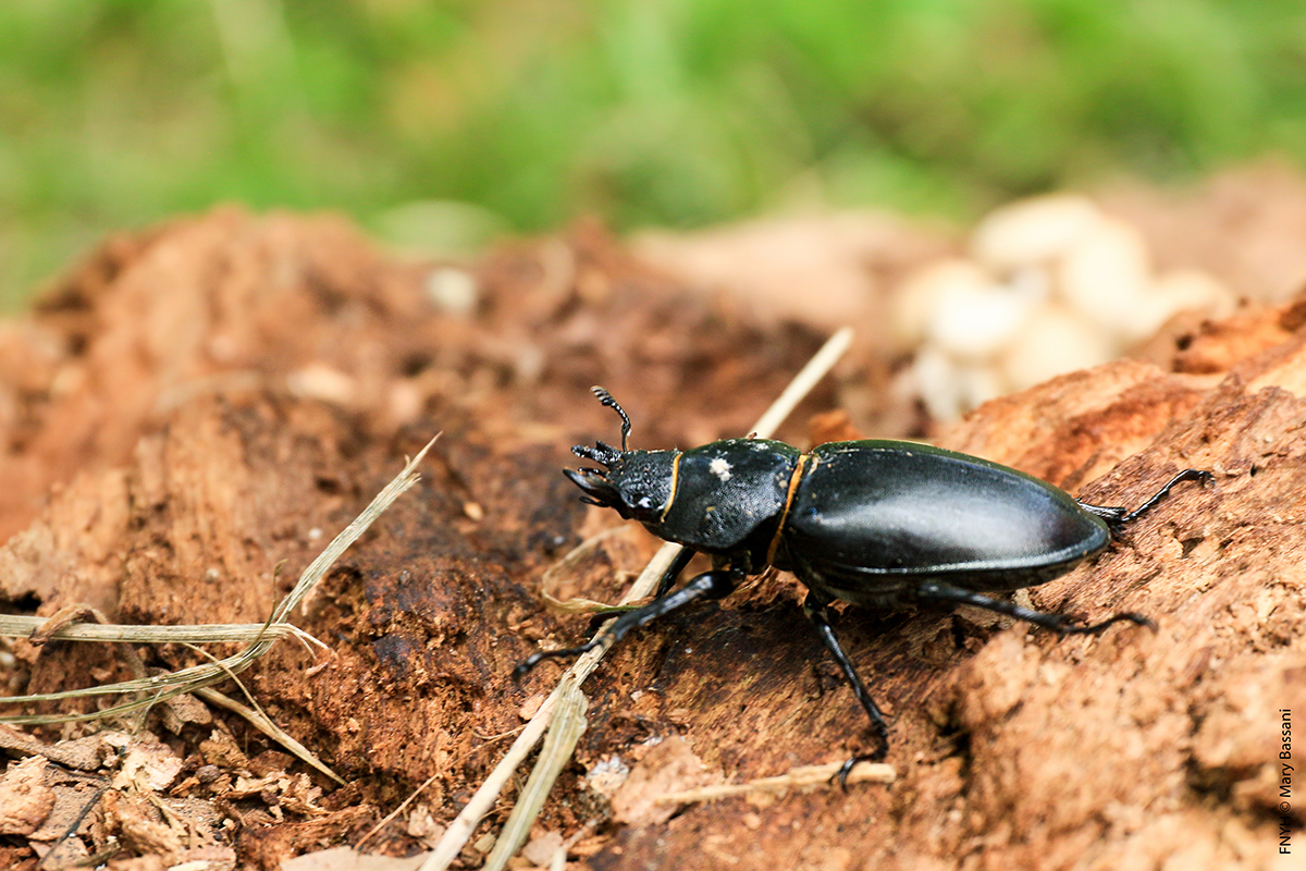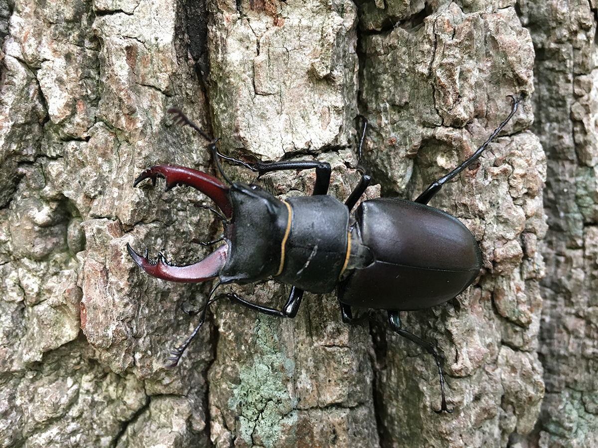 The Lucanus cervus is one of the largest beetles in Europe and belongs to the Lucanidae family. It presents a marked sexual dimorphism, with the males having a large antlers that they use to fight aggressively for the females. The species evidences twilight habits that focus on these disputes in order to fecundate the female. Although it is associated with Quercinea (Quercus sp.), It is a highly polyphagous invertebrate always linked to hardwood and riverbank forests. It is an umbrella species, protecting its habitat boosts many other species that live in its own ecosystem; birds, mammals, amphibians and reptiles.