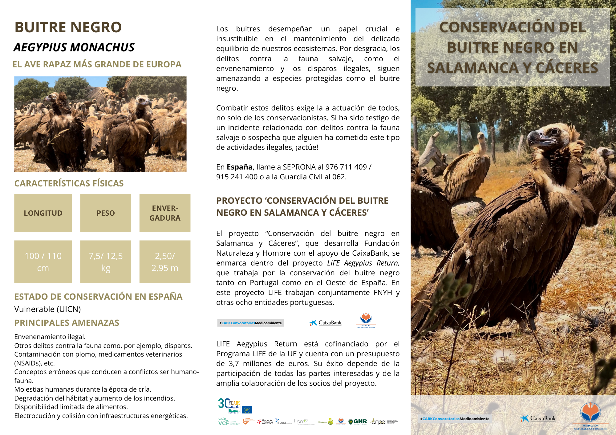 FOLLETO INFORMATIVO DE NUESTRO PROYECTO “CONSERVACIÓN DEL BUITRE NEGRO EN SALAMANCA Y CÁCERES”