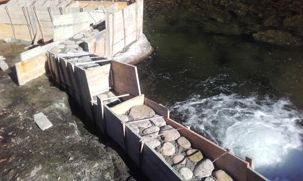 - Rebaje o vertedero que hará de llamada para los peces que usarán el estanque intermedio en su ascenso del río