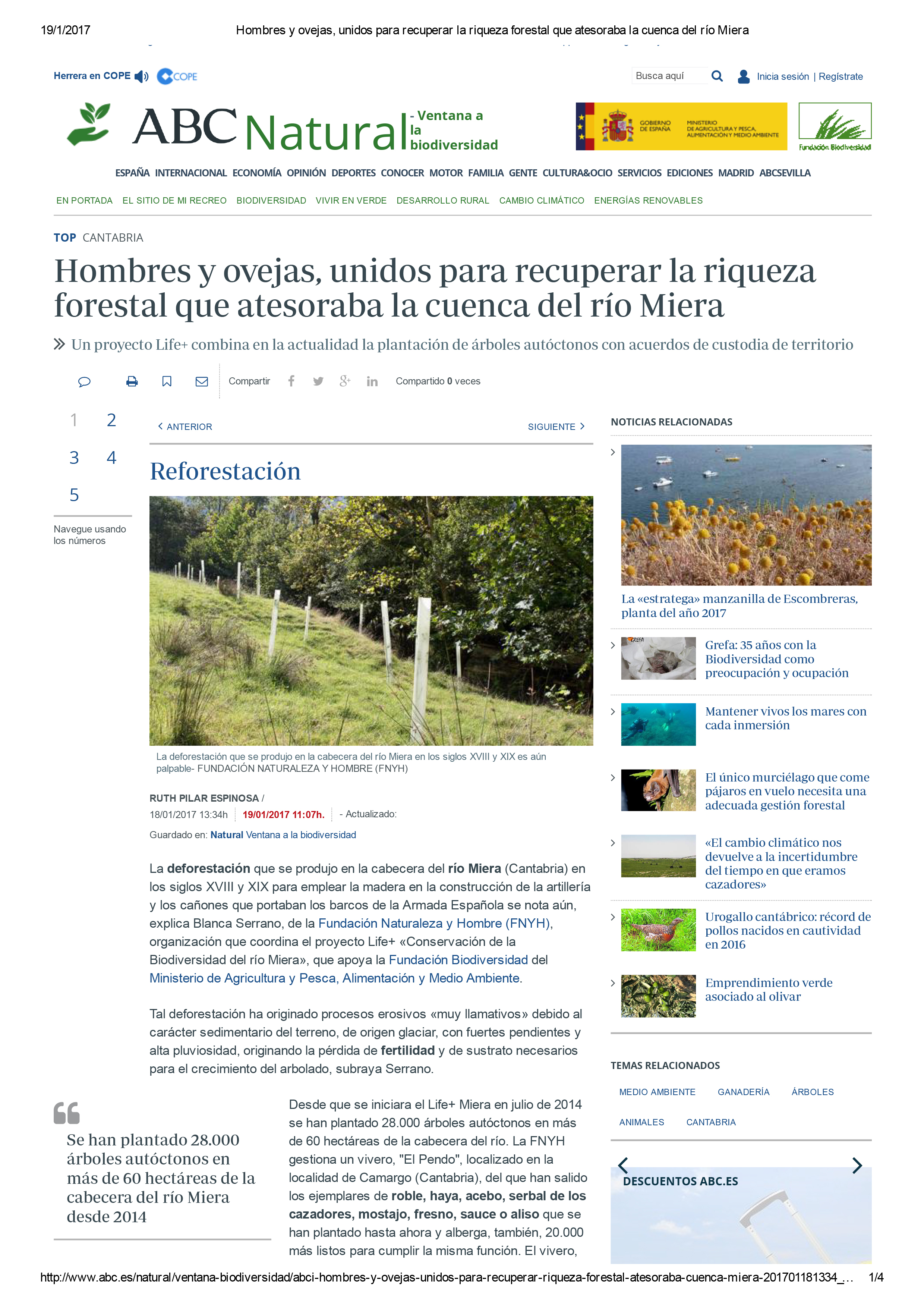 Fundación Naturaleza y Hombre envía puntualmente notas de prensa sobre los hitos de desarrollo del proyecto LIFE+ Naturaleza Conservación de la biodiversidad en el rio Miera a multitud de medios de comunicación. No obstante, para obtener más información acerca del proyecto LIFE Miera o ser incluido en la lista de distribución a medios de comunicación, contactar con: