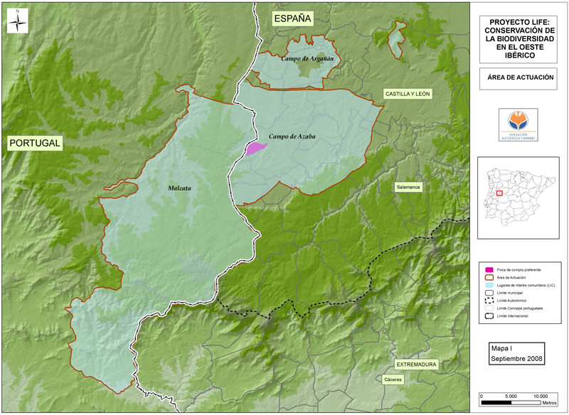 El área de actuación tiene como eje central la frontera luso-española, en el tramo comprendido entre la zona centro-occidental de Salamanca-Guarda, englobando el Campo Charro y las estribaciones de la Sierra de Gata y Malcata. Ocupa los pisos bioclimáticosmesomediterráneo y supramediterráneo, en ambos casos con ombrotipo húmedo.